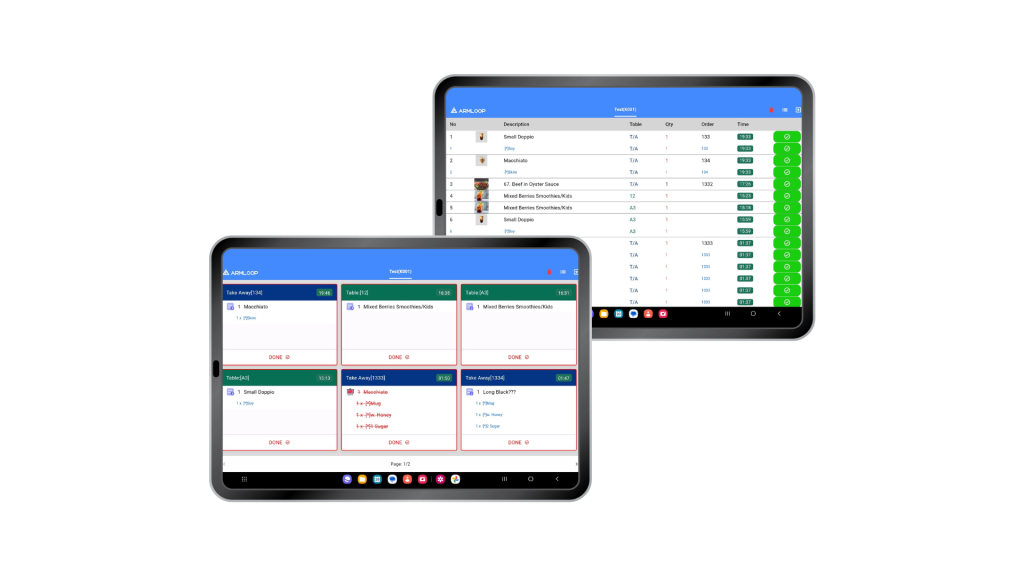 The ArmPOS Kitchen Display Screen solution transitions traditional paper-based kitchen operations to an electronic, paperless system, enhancing back-of-house management.